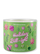 Die 3-Docht Kerze Holiday Dill-ight bringt den verspielten Spaß der Feiertage direkt in dein Zuhause. Würziger Gurkensaft trifft auf frischen Dill, während knuspriges Meersalz dem Duft eine überraschend lebendige, frische Note verleiht.