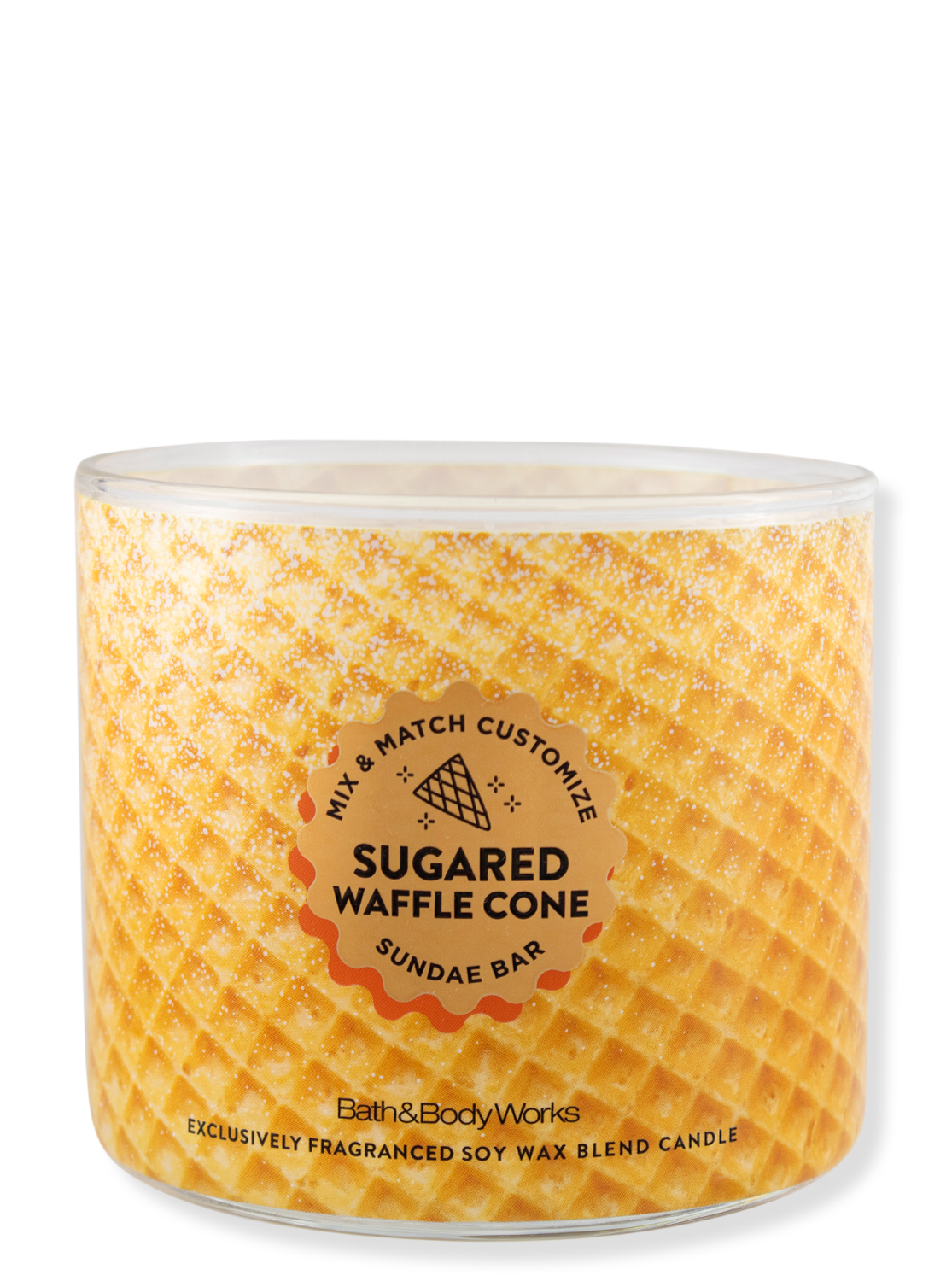 The 3-Wick candle Sugared Waffle Cone fills your home with the tempting scent of a freshly baked ice cream cone full of sweet treats. Freshly baked sugar wafer meets sea salt caramel while gooey marshmallow adds a creamy, delicious depth to the scent.