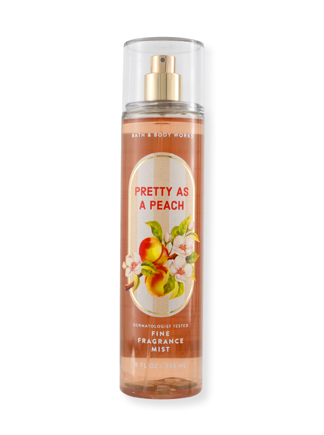 This Pretty as a Peach Body Spray envelops you in the fresh, juicy scent of a just-picked summer peach. Delicate peach notes merge with jasmine flowers, white nectarine, apple blossoms and fine freesia to create a light, fruity-floral aroma that invigorates your senses.