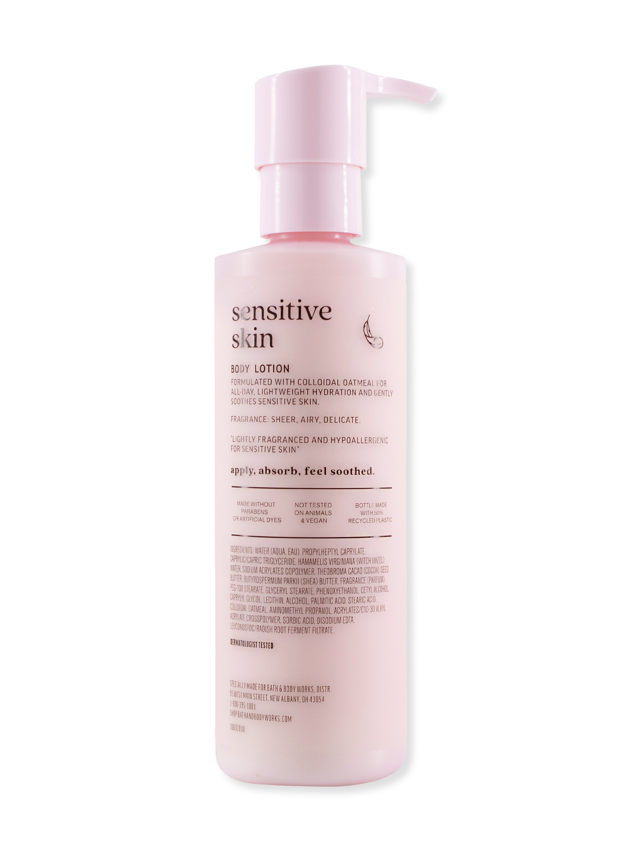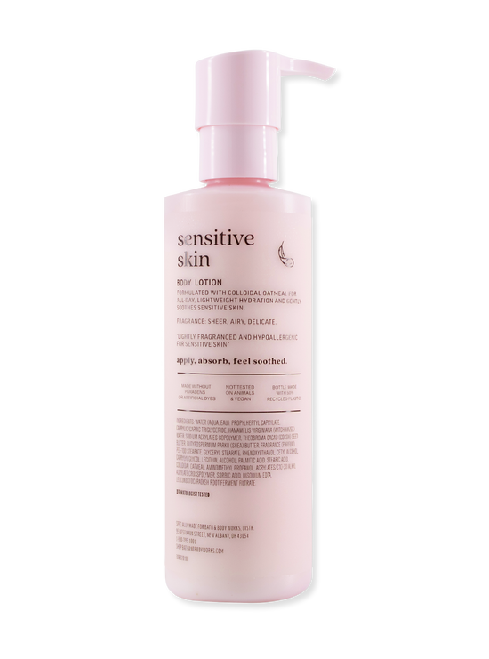 Mit unserer "Sensitive Skin With Colloidal Oatmeal" Body Lotion kannst du dich in puren Luxus hüllen und gleichzeitig die Pflege erhalten, die deine Haut verdient. Genieße das Gefühl von Frische und Zärtlichkeit, während Sie Ihre Haut mit dieser sanften, hypoallergenen Lotion verwöhnen.